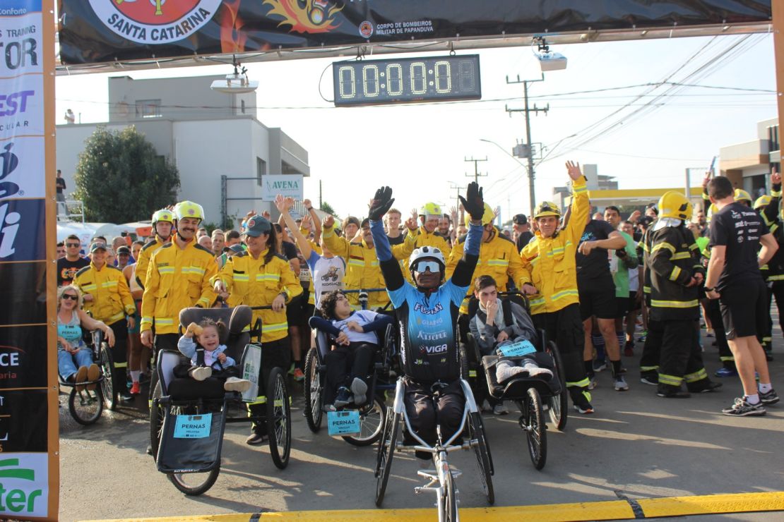 Um dos momentos mais marcantes foi a participação do Projeto Pernas Solidárias, com cadeirantes sendo conduzidos por bombeiros durante o percurso, em uma verdadeira demonstração de solidariedade, empatia e inclusão.