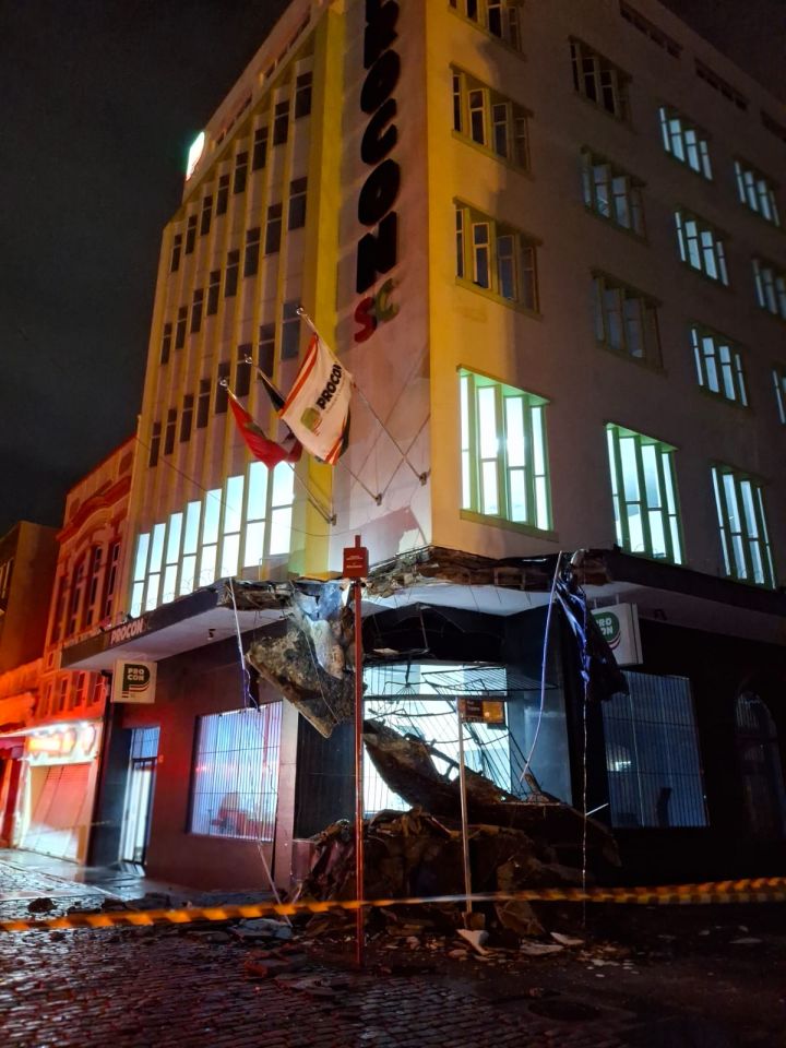 No dia seguinte, segunda-feira, as atenções se voltaram para o ambiente urbano. Guarnições do 1º Batalhão (1º BBM) do CBMSC foram deslocadas para o Centro de Florianópolis após o registro do desabamento de uma laje em uma edificação. A ocorrência foi atendida pela equipe do caminhão Auto Bomba Tanque Resgate (ABTR-186), com a atuação de dois bombeiros militares e dois bombeiros comunitários.
