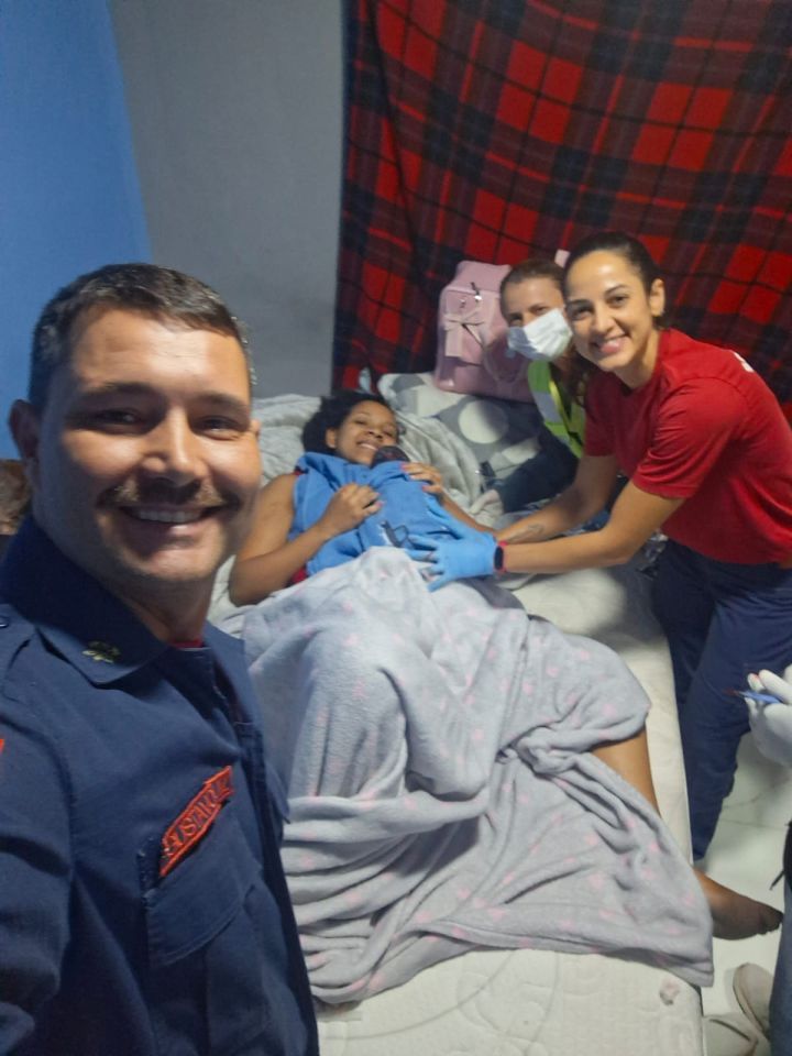 Na madrugada do dia 04, às 02h10, o CBMSC foi acionado para atender uma ocorrência de trabalho de parto na região norte da Ilha. A gestante, com 39 semanas de gestação, apresentava ruptura da bolsa amniótica e contrações regulares com intervalo de aproximadamente um minuto. Durante a condução da paciente até a ambulância, teve início o período expulsivo. Diante da rápida evolução do quadro, a equipe optou por retornar com a gestante ao interior da residência, onde realizou o parto domiciliar com segurança. Às 02h40, nasceu uma menina, sem intercorrências, com a mãe e a bebê em boas condições. A atuação técnica e célere da guarnição foi determinante para o êxito da ocorrência, evidenciando a capacitação dos bombeiros para emergências das mais diversas naturezas.