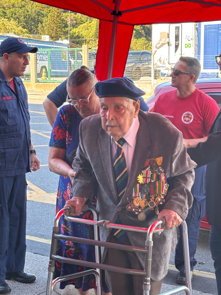 Um dos momentos mais emocionantes foi a homenagem ao 3º sargento Hugo Pedro Felisbino, veterano da Força Expedicionária Brasileira (FEB) na Segunda Guerra Mundial e último praça vivo em Santa Catarina, que completará 106 anos no dia 30 de dezembro.