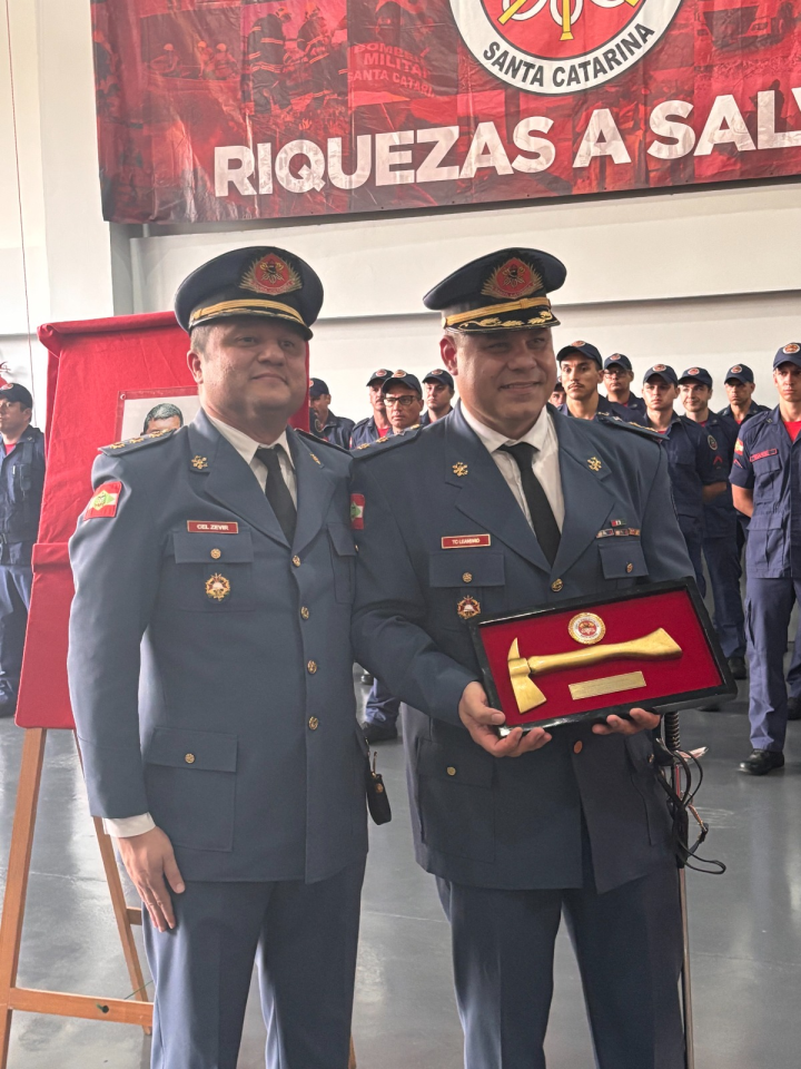 Após três anos à frente do Batalhão, o tenente-coronel Fabiano Leandro dos Santos transmitiu o cargo ao tenente-coronel Thyago da Silva Martins. Natural de Florianópolis, o novo comandante ingressou no CBMSC em 2009. Possui formação em Comunicação Social, especialização em Gestão Pública e vasta experiência em áreas administrativas e operacionais da Corporação, tendo atuado no Estado-Maior Geral, na Diretoria de Logística e Finanças, na Diretoria de Segurança Contra Incêndio e Pânico, e como subcomandante do 5º BBM.