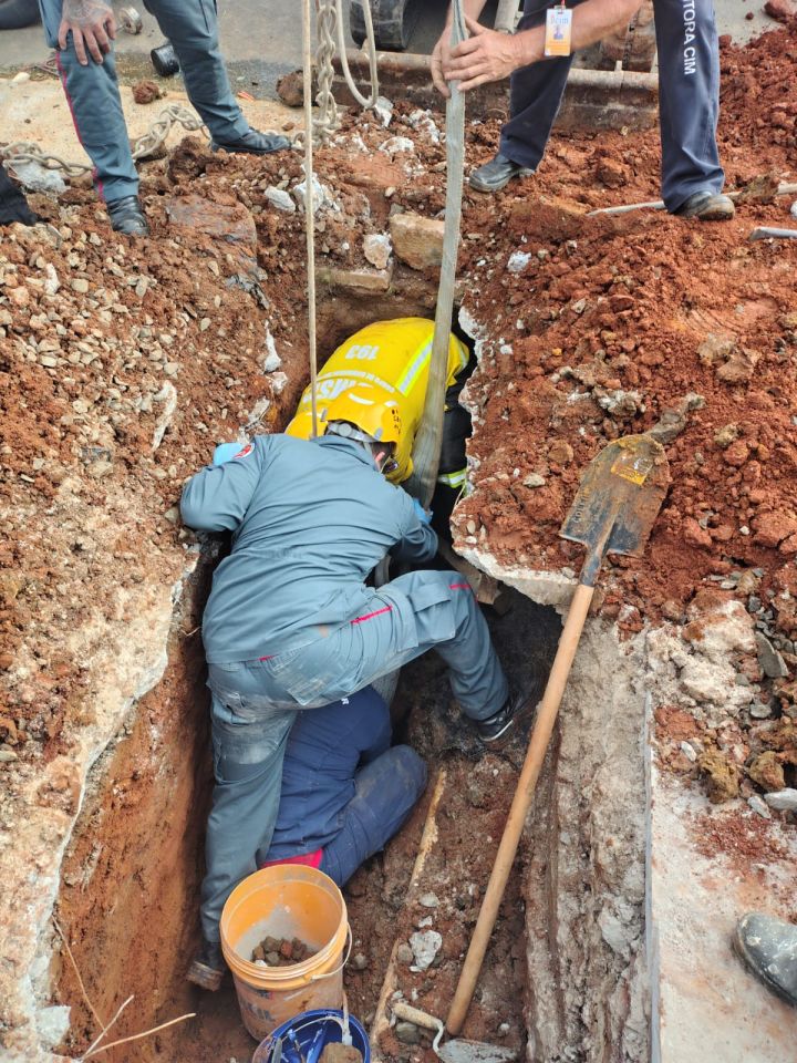 Com o apoio da máquina da própria empresa responsável pela obra e utilizando técnicas de resgate e salvamento, os bombeiros removeram inicialmente os blocos maiores de terra e argila. Na sequência, foi realizada a retirada gradual do restante do material, de forma cuidadosa, evitando movimentações que pudessem comprometer ainda mais a estabilidade da vala.