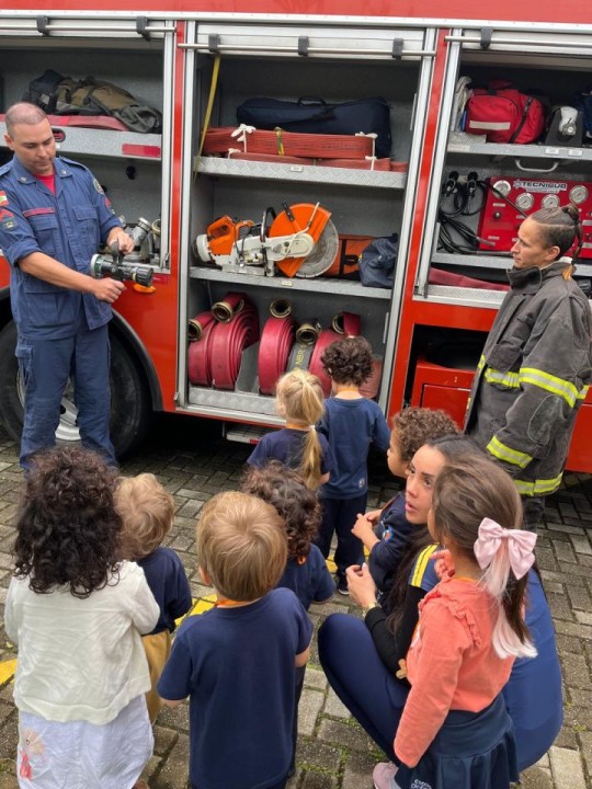 De forma lúdica e interativa, os bombeiros apresentaram as atividades desenvolvidas pela corporação e demonstraram o uso dos principais equipamentos operacionais, despertando a curiosidade e o entusiasmo das crianças. O momento foi marcado por muita troca de conhecimento, brincadeiras e curiosidade sobre a rotina dos profissionais.