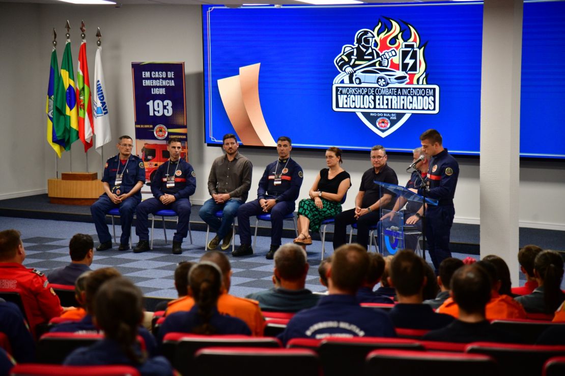 Pelo segundo ano consecutivo, o Corpo de Bombeiros Militar de Santa Catarina (CBMSC) promoveu o Workshop de Combate a Incêndio em Veículos Eletrificados, consolidando-se como referência nacional na discussão sobre os desafios operacionais envolvendo veículos elétricos e híbridos. A segunda edição foi realizada nesta-quarta, 11, em Rio do Sul e reuniu cerca de 350 participantes de 14 estados brasileiros. O evento integra o calendário de comemorações do centenário da corporação.