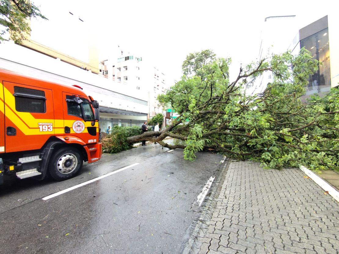Após uma forte chuva que atingiu Florianópolis na tarde de quarta-feira, 10, as equipes do 1º Batalhão de Bombeiros Militar (1ºBBM) foram acionadas para averiguação e corte de uma árvore caída em frente a um shopping, na região central de Florianópolis.