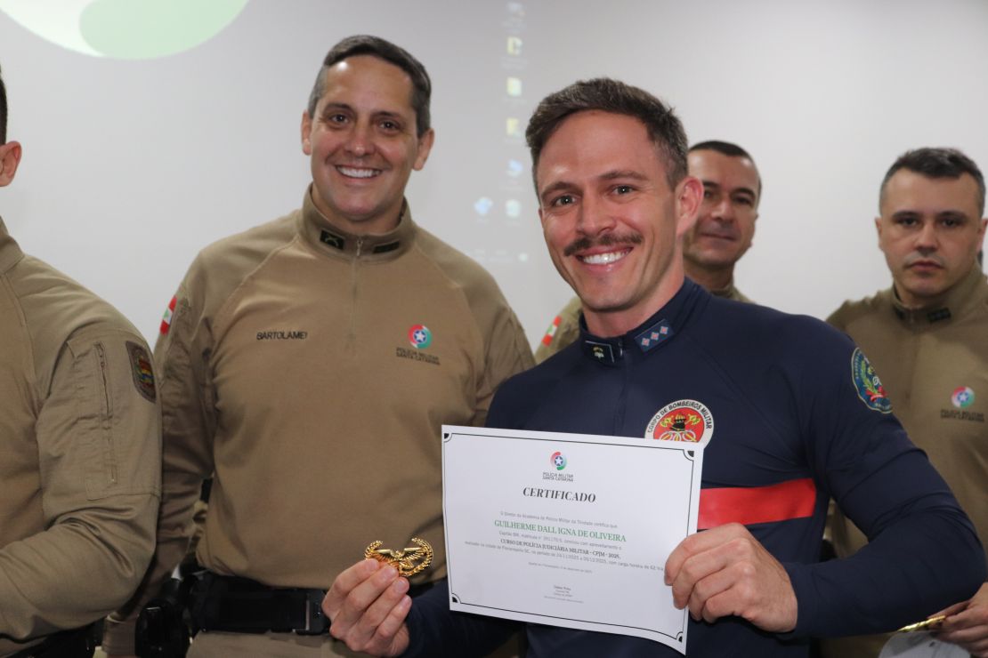 Na manhã desta sexta-feira (5), dois oficiais da Corregedoria-Geral do Corpo de Bombeiros Militar de Santa Catarina, Major Basílio e Capitão Dall Igna, concluíram o 2° Curso de Polícia Judiciária Militar (CPJM), oferecido e coordenado pela Polícia Militar catarinense.